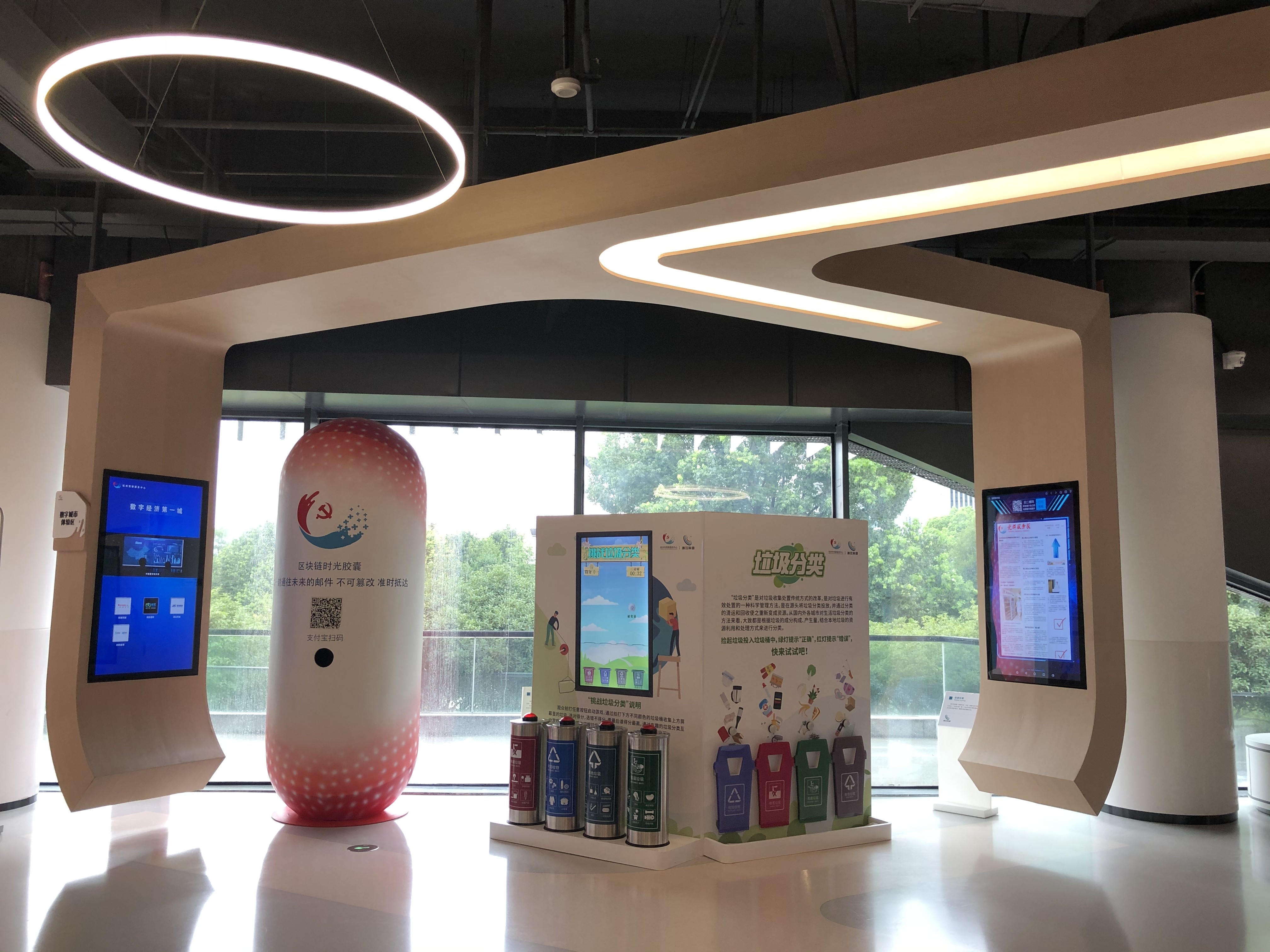 科信参与了该馆的建设,全景式展示杭州党建发展进程、生态链条、先锋形象、服务功能等。党员群众可以体验数字经济、社会民生、非遗文化等课程,还有特色“十个一”打卡活动:比如到时光胶囊留下一句美好祝愿或感言;到垃圾分类展项参与一次垃圾分类知识pk赛等。